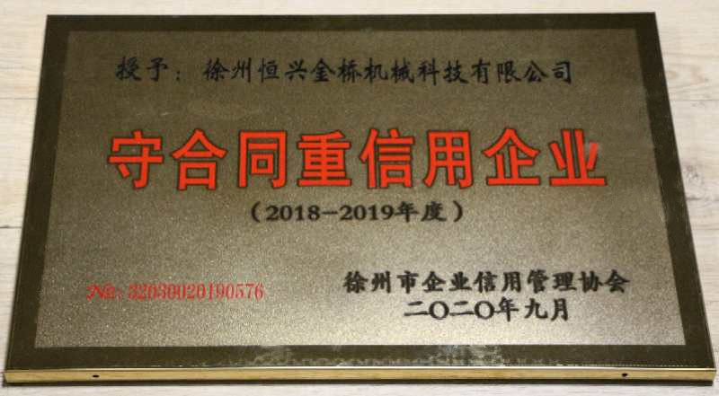 徐州恒興金橋機(jī)械科技有限公司榮獲徐州市級(jí)“守合同重信用”企業(yè)稱號(hào)