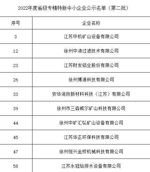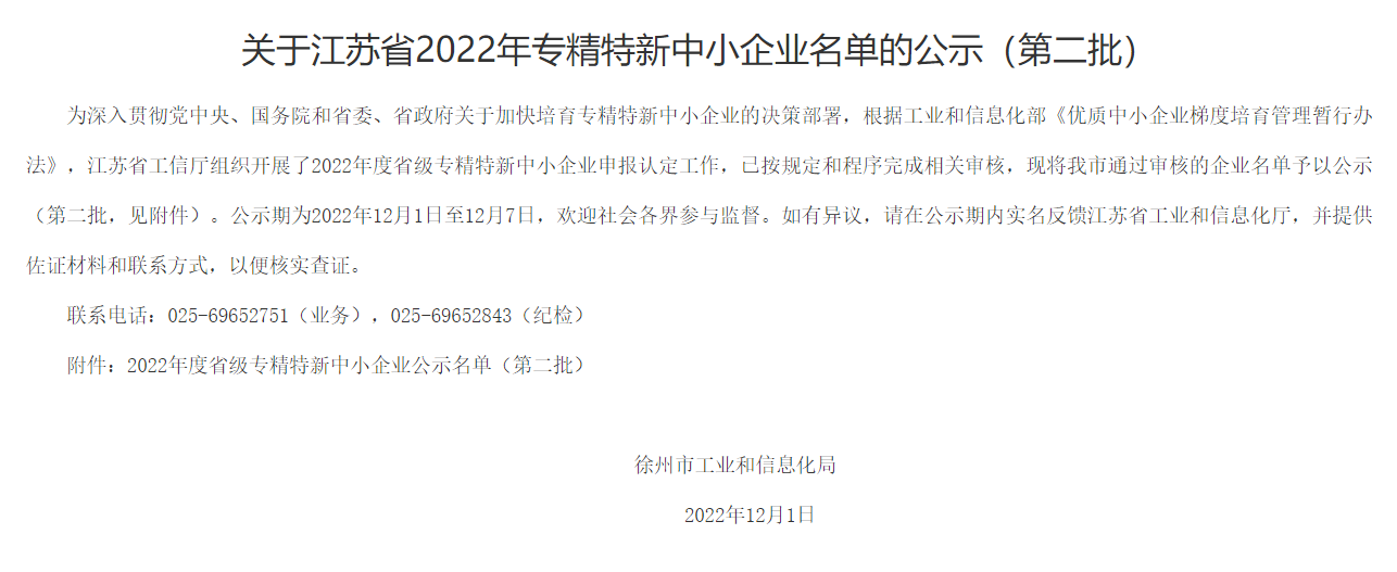2022年度第二批江蘇省專(zhuān)精特新中小企業(yè)名單公示